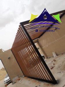 - نقوم بتنفيذ أعمال البرجولات الحديدية ذات المظهر الخشبي التي توفر جلسات خارجية ساحرة في الحدائق المنزلية.